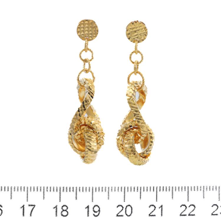 Textured rope drop gold earrings. 22ct yellow gold. Drop length: 4.3cm. Weight: 10.2g. (Pre-owned)