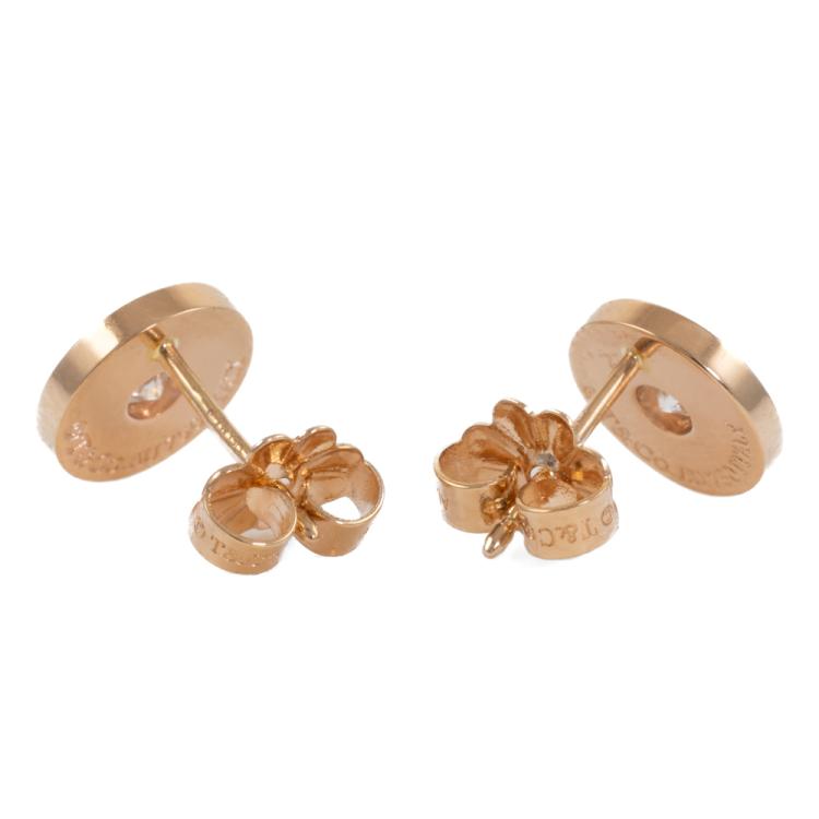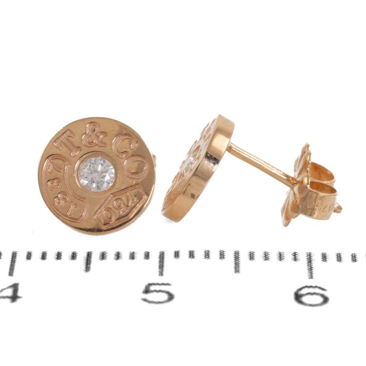 Tiffany & Co 1837 Circle earrings with 2 round natural Diamonds totalling approximately 0.10ct. 18ct rose gold. Motif size: 8.2mm. Made in Italy. Weight: 2.4g. With Tiffany & Co box. (Pre-owned)