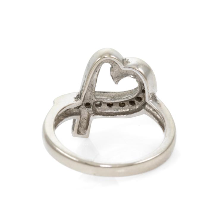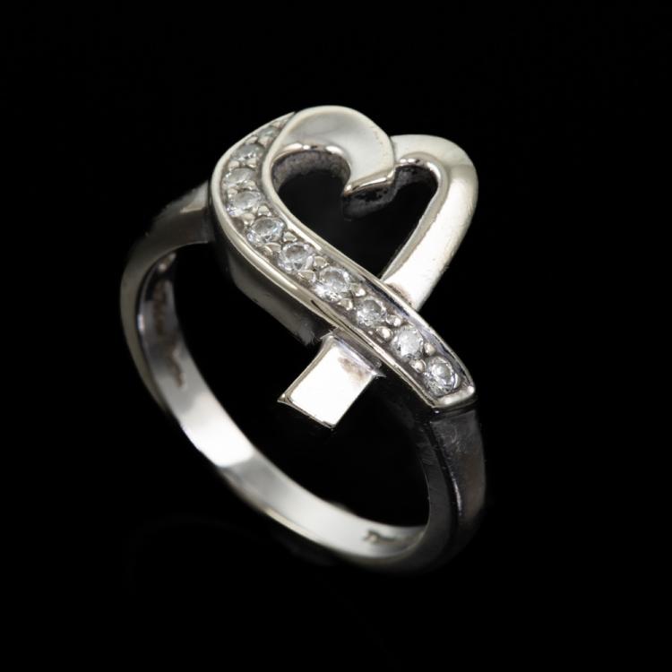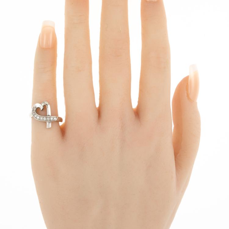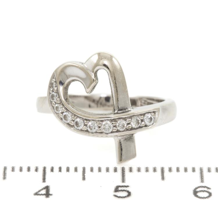 Tiffany & Co. Paloma Picasso Loving Heart Diamond ring with round natural Diamonds totalling approximately 0.10cts. 18ct white gold. Ring size L, - ring resizing is not recommended. Band width: 2.1mm - 2.8mm. Weight: 4.1g. (Pre-owned)