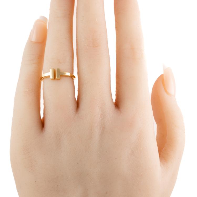 Tiffany & Co T wire ring. 18ct yellow gold. Ring size I - ring resizing is not recommended. Band width: 1.78mm. Made in Italy. Weight 2.8g. With Tiffany & Co. box. (Pre-owned)