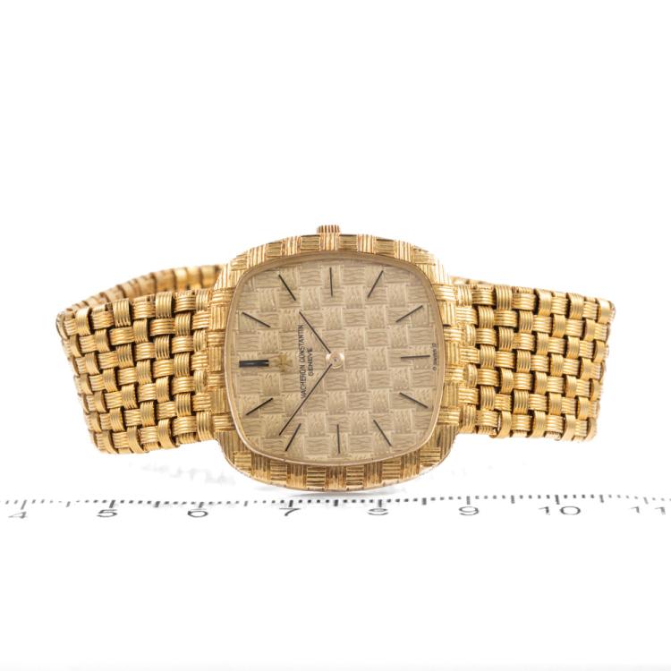 Vacheron Constantin Vintage 18ct yellow gold manual winding watch. Gold dial, date, approximate case diameter: 30mm, wrist size: 15.5cm, Swiss made. Ref# 33023P. With Vacheron Constantin 18ct yellow gold bracelet and clasp. With Certificate of Authenticity. 3 month FSA warranty (Pre-owned)