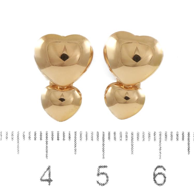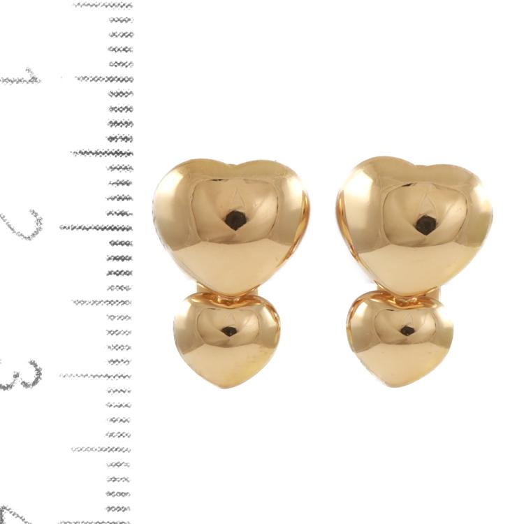 Van Cleef & Arpels double heart design clip-on earrings (for non-pierced ears). 18ct yellow gold. Weight: 7.5g. (Pre-owned)