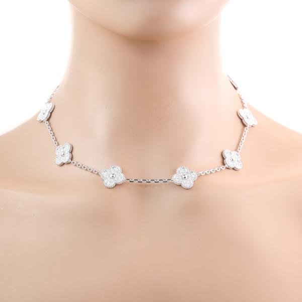 Van Cleef & Arpels Vintage Alhambra necklace, 10 motifs with round Natural Diamonds totalling 4.83cts (Estimate grading: F VS). 18ct white gold. Motif size: 15mm. Length: 42cm. Weight: 29.6g. With Van Cleef & Arpels Certificate dated 20/5/2023, Van Cleef & Arpels case and shopping bag. (Pre-owned)
