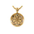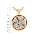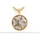 Wheel of Fortune Diamond pendant with baguette cut natural Diamonds totalling 1.25ct (Estimated grading: J P2). 14ct yellow gold and white gold with 80cm 10ct yellow gold chain. Weight: 108.1g. With certificate #416900. (Pre-owned)