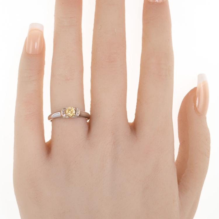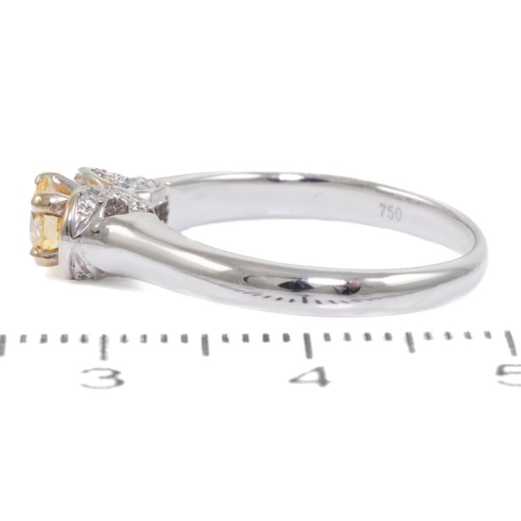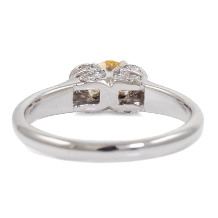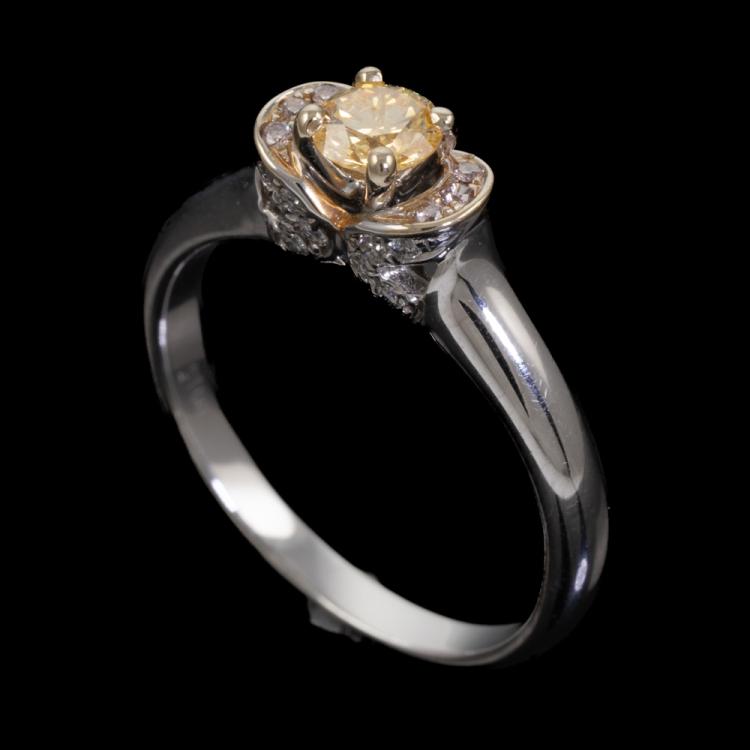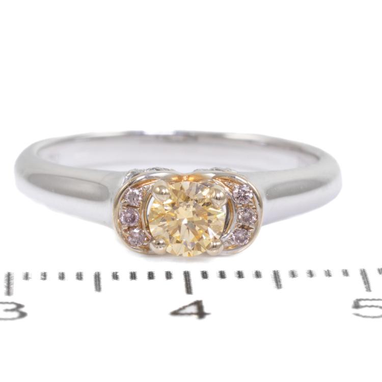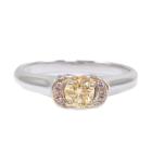 Diamond ring with a centre round natural yellow Diamond of 0.32ct (Estimated grading: Fancy Vivid Yellow VS), 6 round natural pink Diamonds totalling 0.02ct and remaining natural white Diamonds totalling 0.15ct. 18ct yellow & white gold. Ring size L1/2. Band width: 2.1mm-3.2mm. Weight: 3.8g. (As new)